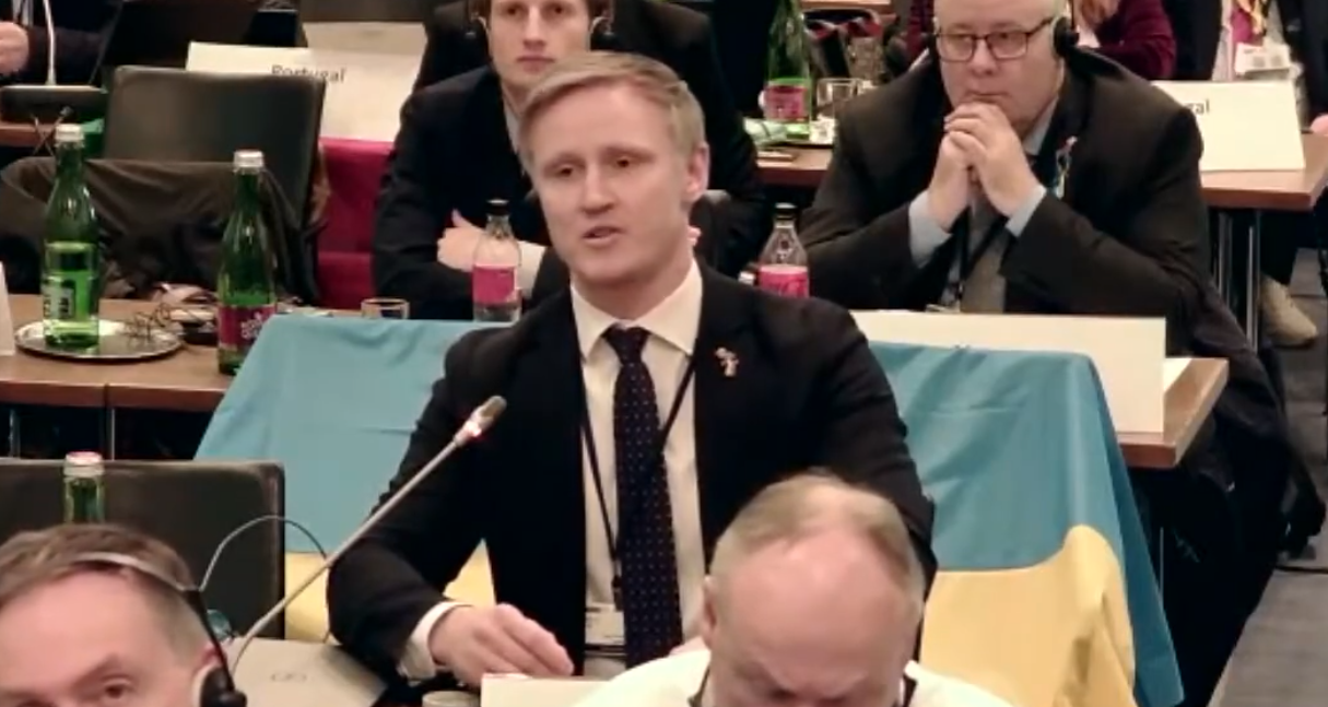 “Той факт, що ця делегація тут, а надто – делегація, що складається з підсанкційних осіб, які голосували за анексію території незалежної країни, Донбасу, Херсонської, Запорізької областей, Луганська – це просто ганьба! Це ті принципи, які ця інституція покликалась захищати й сторожити! А ми сидимо, наче нічого не сталось!” – заявив Колс.