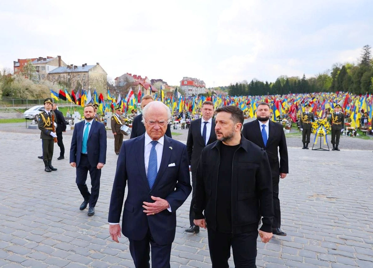 “Король Швеції Карл XVI Густав розпочав свій візит до України з ушанування разом зі мною наших полеглих воїнів. Дуже вдячні за цю повагу. Памʼять про кожного для нас дуже важлива. Адже вони билися не лише за нашу країну, а й за захист усієї Європи, щоб російське божевілля і вбивства не пішли далі. Вічна памʼять нашим полеглим героям!”, – наголосив глава української держави.