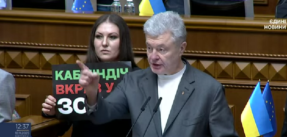 Опозиційна фракція “ЄС” заблокувала трибуну Верховної Ради і вимагає звільнення усього Кабінету міністрів на тлі корупційної справи навколо “Енергоатому”.