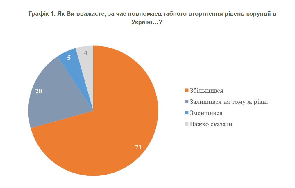 Станом на вересень 2025 року 71% громадян вважають, що з початком повномасштабного вторгнення РФ рівень корупції в україні збільшився.