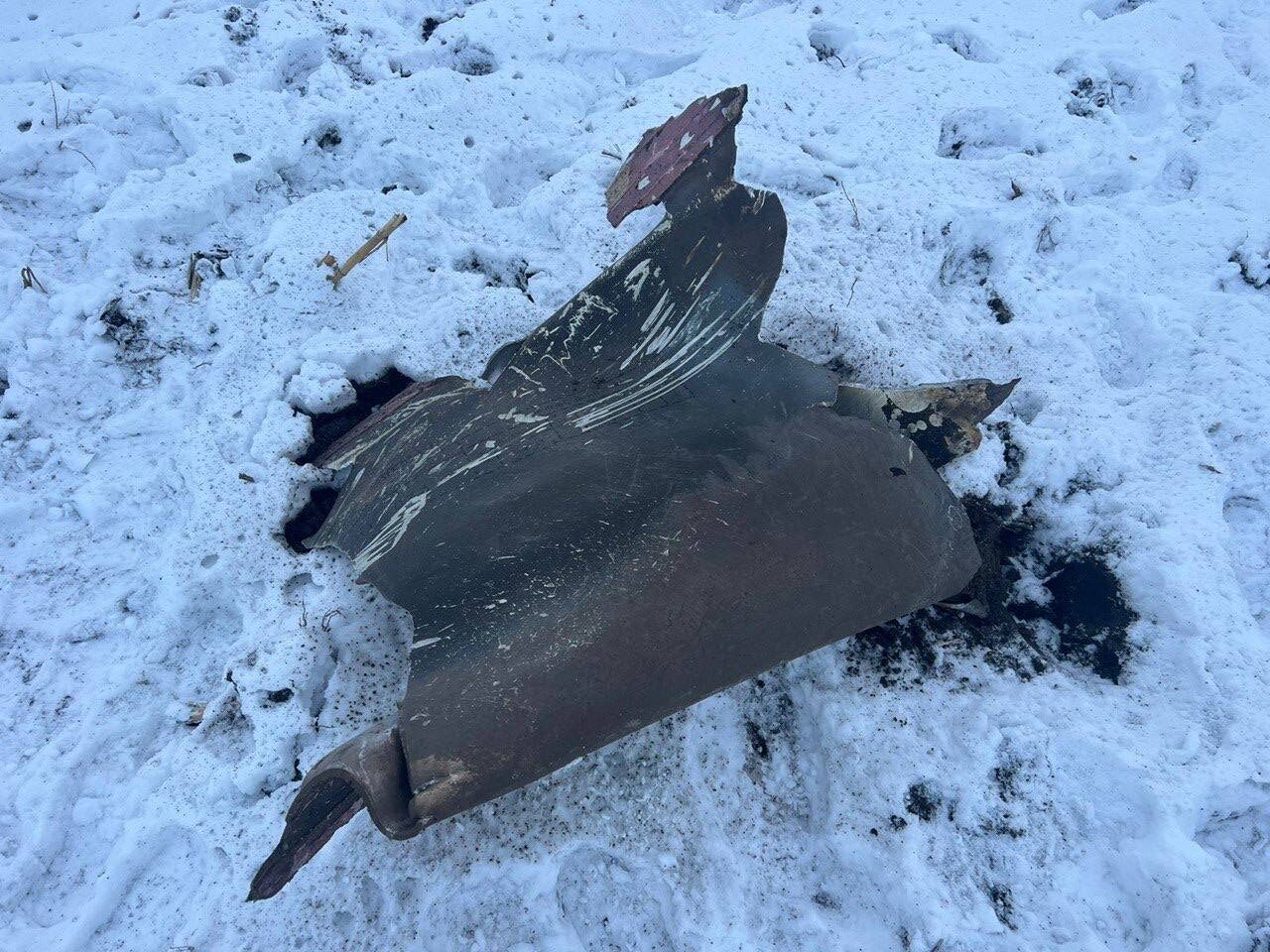 А начальник поліції Київської області Андрій Нєбитов опублікував фото уламків збитого ворожого “шахіда”, які виявили в одному із районів Київщини.