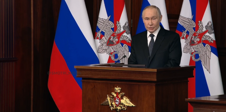 Російський диктатор Володимир Путін та керівництво Міноборони РФ під час розширеної колегії відомства фактично підтвердили намір Кремля продовжувати війну проти України, озвучивши низку агресивних і пропагандистських заяв.