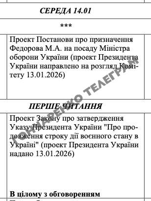 Гончаренко також оприлюднив фото порядку денного засідання, яке має розпочатися о 10:30.