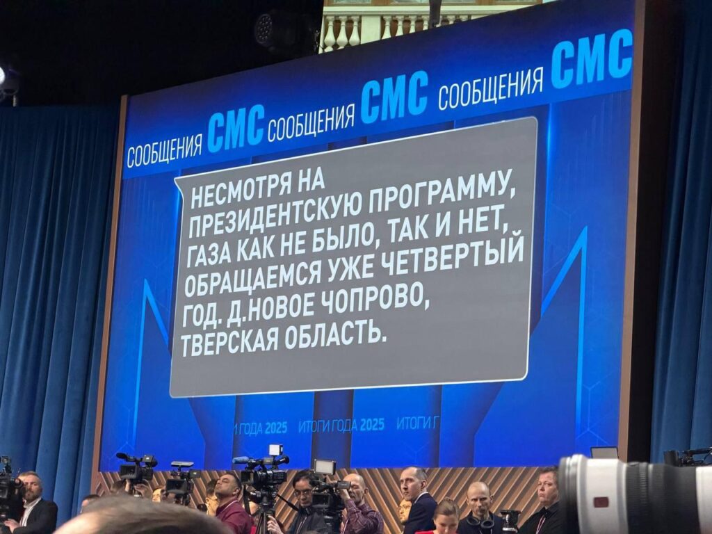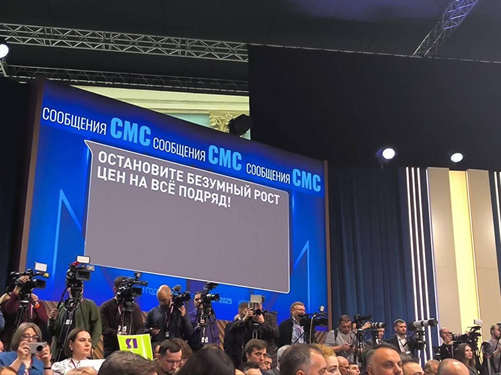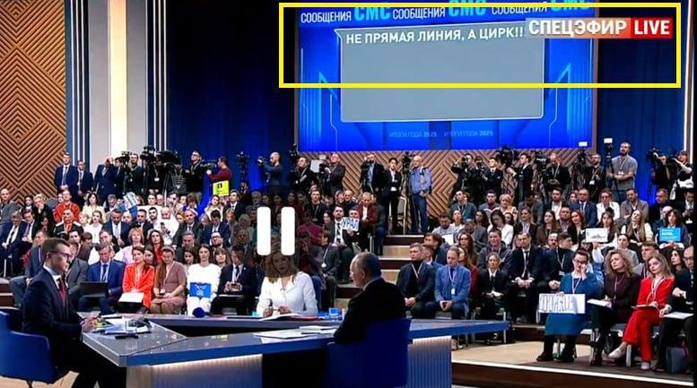 Російський диктатор Володимир Путін, 19 грудня, проводить традиційну пряму лінію з народом. На екрани виводять деякі питання і репліки росіян з критикою невдоволенням, які потрапляють у кадр.