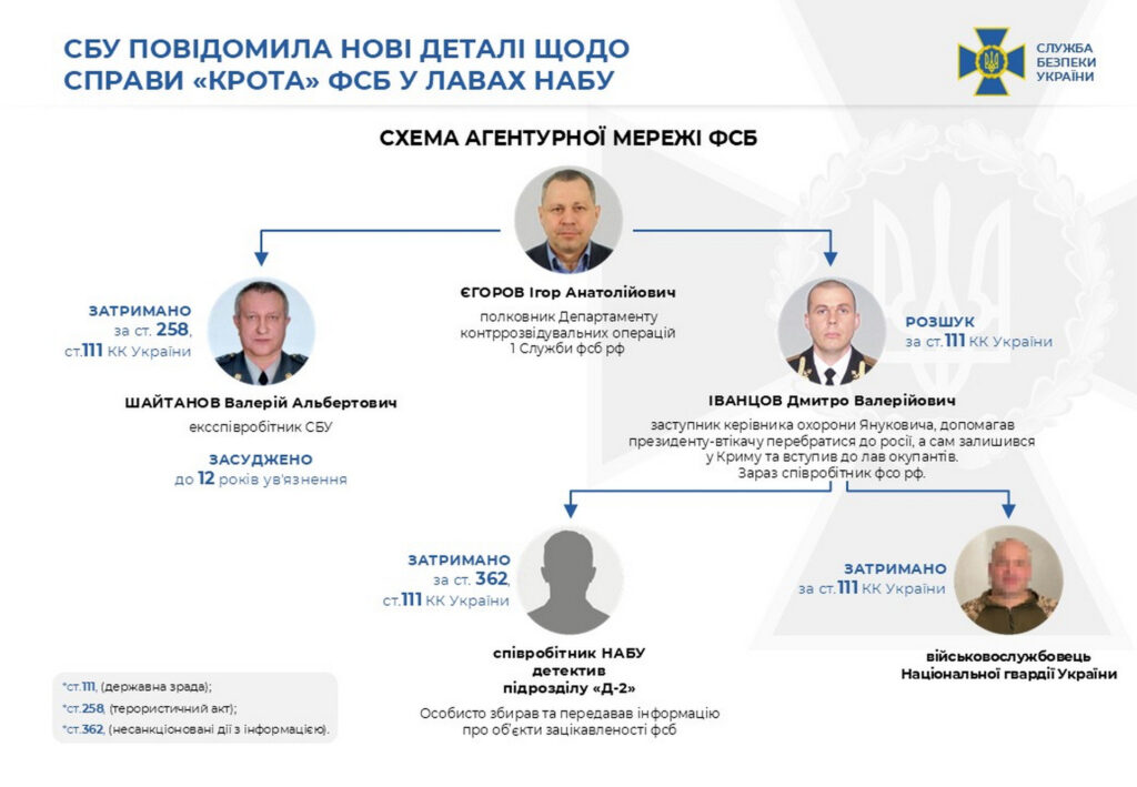 Згодом СБУ встановила, що ще один агент Єгорова-Іванцова – колишній співробітник МВС, який на час затримання виявився діючим співробітником НАБУ.