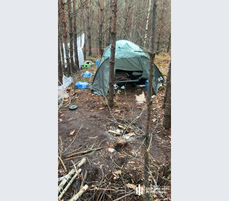 Через три дні, 6 листопада, працівники ДБР та поліції встановили місцеперебування підозрюваного: він переховувався у лісі на Рівненщині. Для тривалого усамітнення експравоохоронець ретельно підготувався, облаштувавши собі тимчасове житло: він придбав мікроавтобус, намет, зарядну станцію, значну кількість харчів та різноманітне спорядження.