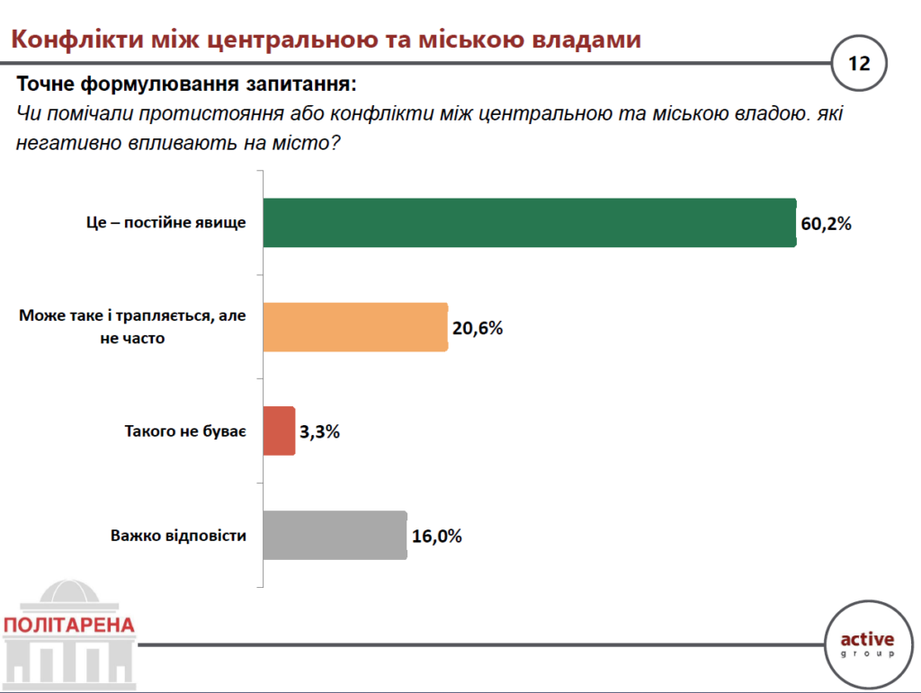 Конфлікти між центральною і міською владами Києва 60,2% киян вважають постійним явищем.
