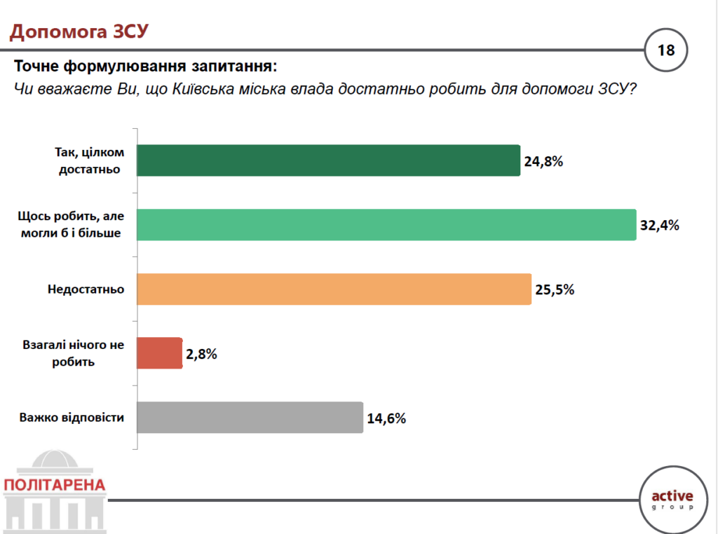 Рівень допомоги ЗСУ з боку столичної влади більшість киян оцінюють позитивно.