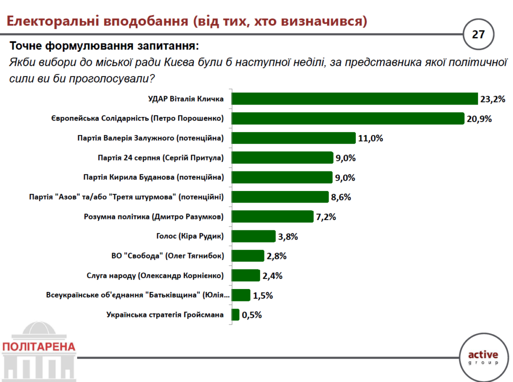 “У сукупності це формує значний масив потенційно нестабільного електорату та підкреслює фрагментованість електорального поля Києва”, – зазначається у дослідженні.
