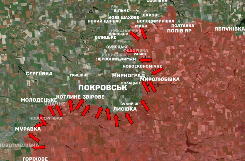 Як повідомляв президент Зеленський, Росія стягнула на цей напрямок до 170 тисяч військових, у самому Покровську наразі від 260 до 300 російських військових. Також у місті працює 425-й окремий штурмовий полк. За словами Зеленського, навколо Покровська зберігається напружена ситуація, але місто не перебуває у повному оточенні.