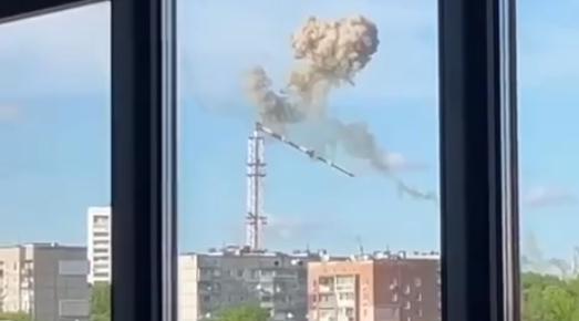 Під час атаки на Харків 22 квітня, російські війська завдали удару по телевізійній вежі ракетою Х-59.