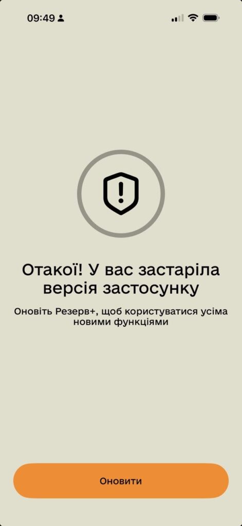 При відкритті “Резерв+” користувачі бачать надпис “Отакої! У вас застаріла версія застосунку”. Однак при спробі перейти в App Store чи Google Play Маркет і оновити, застосунок жодних оновлень не пропонує.