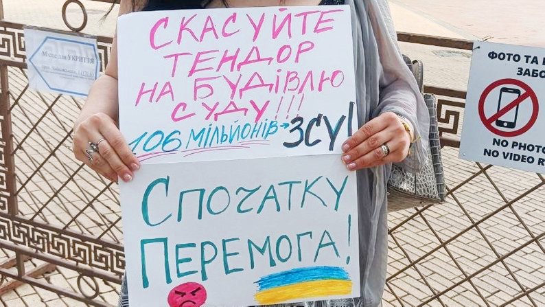 В Одесі депутати вже вдруге відмовилися знімати гроші з фінансування ремонту Київського районного суду за 106 мільйонів гривень. У зв’язку з цим біля міськради провели акцію протесту проти нецільового використання коштів та задля спрямування їх на потреби ЗСУ.