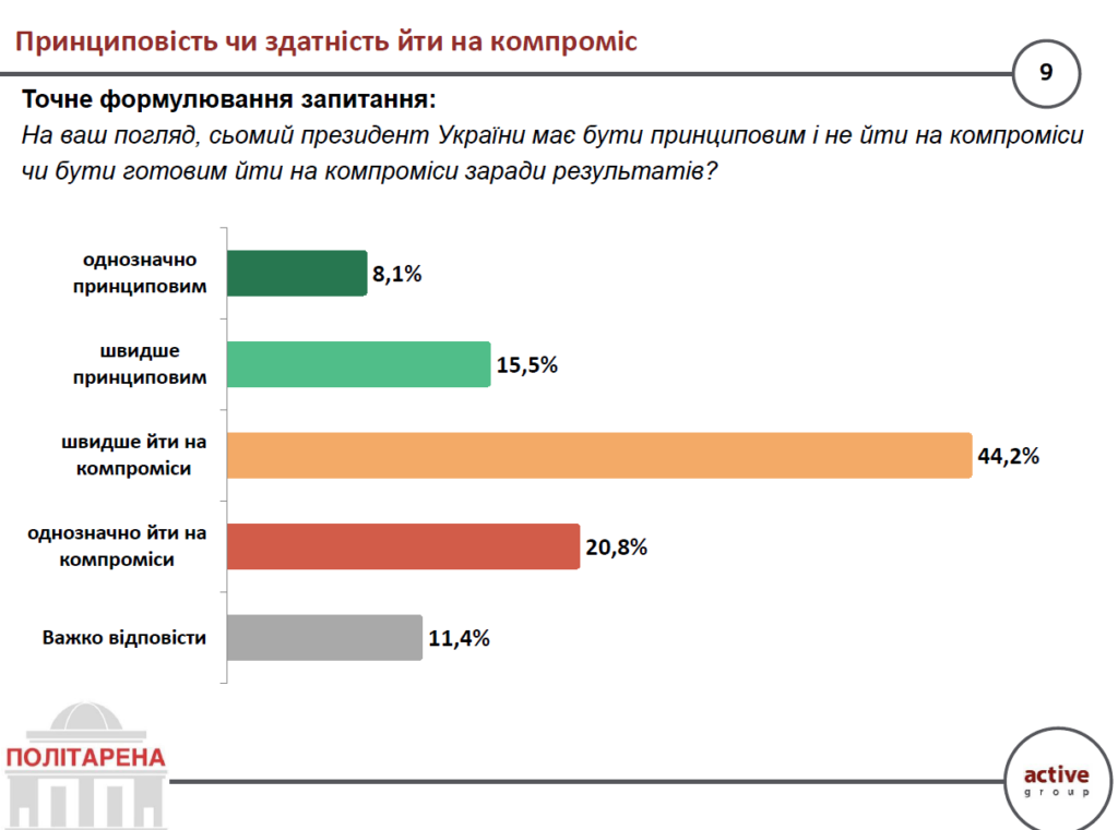 Стосовно здатності президента йти на компроміс заради результату, то більшість українців – 65% підтримують таку поведінку.