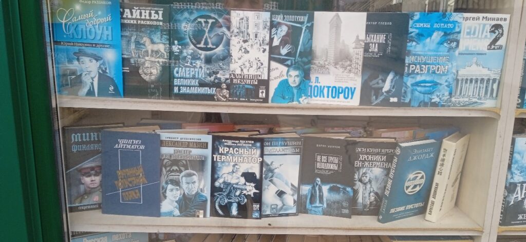 Є у продажу навіть ті автори і видавництва, які потрапили в Україні під санкції. Чи є на них попит? Сказати важко, оскільки за весь час перебування журналіста на ринку, а це близько години, такою літературою ніхто не зацікавився. Але, не виключено, що вона свого шанувальника все ж знаходить.