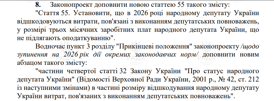 Коли минулого тижня народні депутати ухвалили держбюджет України на 2026 рік, то у ньому нишком втричі збільшили собі компенсацію видатків на депутатську діяльність – до 200 тис. грн.