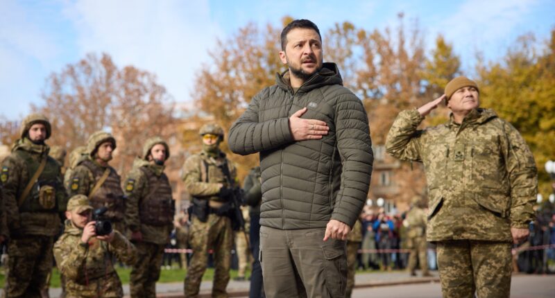Вже 14 листопада Зеленський відвідав Херсон, щоб відсвяткувати його звільнення від російських військ із жителями та військовими.