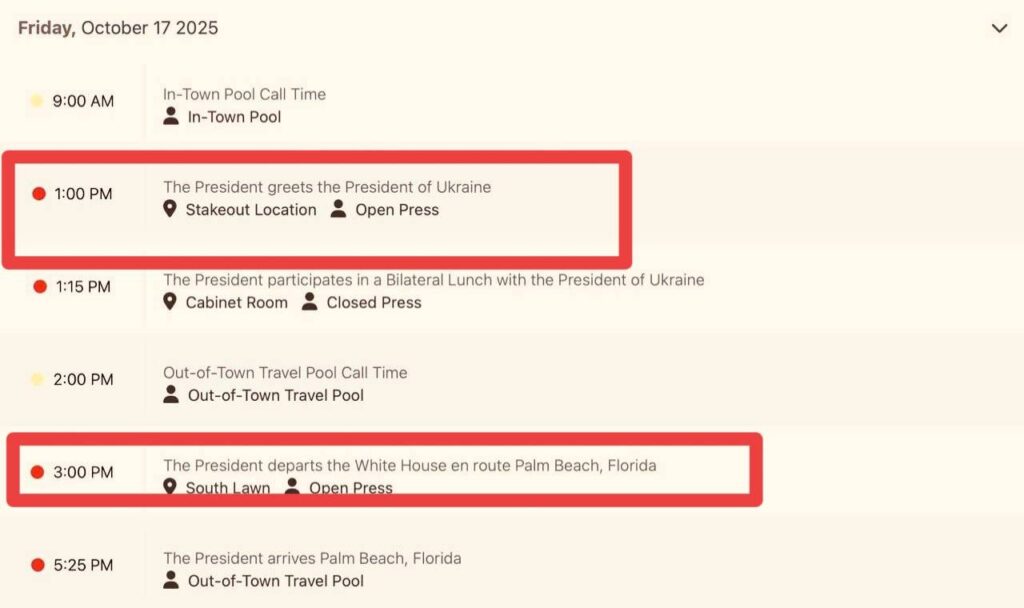 Як випливало з розкладу американського президента, о 13.00 за часом східного узбережжя США (20.00 за київським часом) Зеленський прибуде до Білого дому, зустріч у форматі обіду пройде за зачиненими дверима.